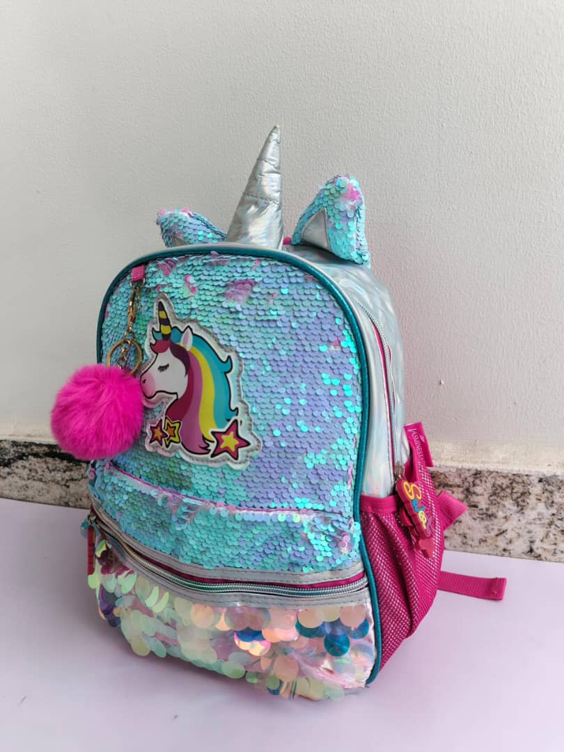 Sparkling Design: Adorned with shimmering reversible sequins in vibrant colors, featuring a whimsical unicorn appliqué with a horn and ears on the front with Pom-Pom Keychain.